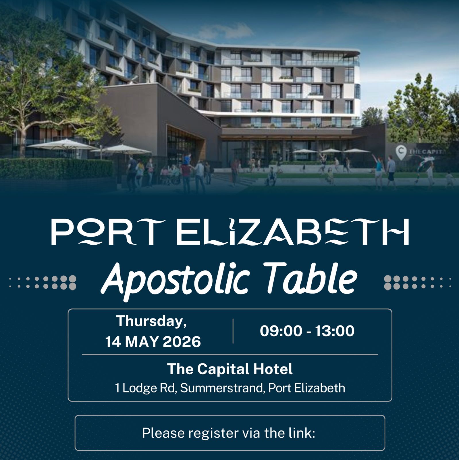 Date 2026/05/14 | Time 09:00 | Location The Capital Hotel 1Lodge Rd, Summerstrand, Port Elizabeth |